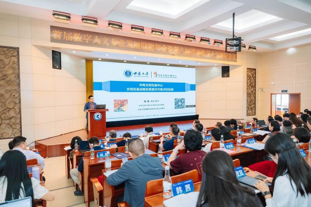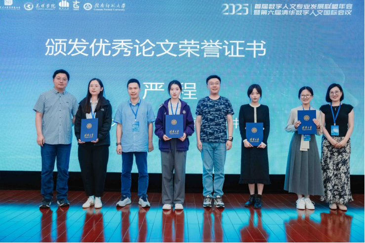 上海大学党委常委、文学院曾军教授,华中科技大学人文学院刘根辉教授,中希文明互鉴中心/文明互鉴战略发展重庆市重点实验室主任胡航教授,中山大学中国语言文学系(珠海)贾智副教授,浙江工商大学人文与传播学院姜勇副教授,湖南女子学院石潇纯副校长接受证书,并介绍本单位数字人文学术研究与专业建设情况。