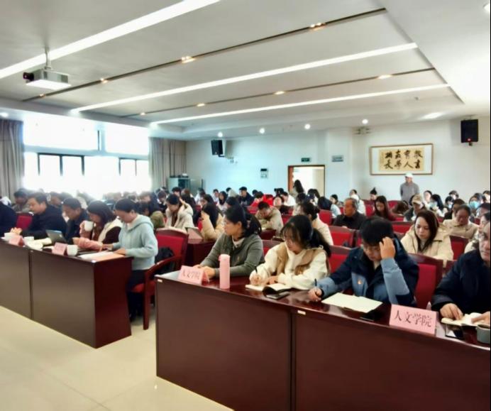 11月27日,学习贯彻党的二十届四中全会精神宣讲报告会在行政楼502会议室举行,报告会由学校党委副书记王文成主讲,人文学院100余名师生党员代表参加学习。本次宣讲会由人文学院党委书记王海艳同志主持。