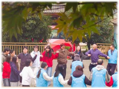ZYY大哥认为,我们作为中国少数民族语言文学的研究生应该多出去走走,去进行实地考察。原因在于,每个人对于同一事物的理解都不一样。ZYY大哥的原话极为生动形象,他说,“就像你问一个人大象是什么样子一样,有人说是这样的(用手作柱状动作),有的人说是那样的(用手作尖牙状),每个人的理解是不一样的”。同时,有很多歌曲、故事都是大家根据不同的情景即兴创作的。比如,晚上的演出,有几句词就是他当场发挥的。昆明的CS补充道,“同样的歌,在不同的地方叫法也不一样,在他们那边叫《祝酒歌》,在我们那边就叫《跳酒歌》,不一样的……。”张怡同学则和来自楚雄的学员详细地交流了花灯方面的问题。最后,我们互留了联系方式并共同期待下次再见。