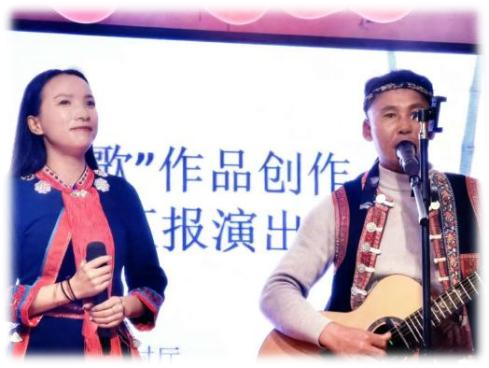 10月30日,我们去到了曲靖市土瓜冲村。参观并了解旅居式农村是如何被建设出来的。在那里的农家书屋的书架上,郭凡蠡同学看到了陈忠实、贾平凹和陈彦等陕西籍作家的作品,让他想起远在1500多公里外的商洛老家。于是,信手作短诗《秦滇》一首,并在当晚的汇报演出中朗诵。下午,同学们还学了打跳,也因此与其他学员熟络了起来。晚上,培训班进行了汇报演出,我们9位同学见识到了来自云南各地的民间文艺,也被我们的民族文化所震撼、吸引。其中,来自红河州开远市羊街乡的彝族大哥ZYY,弹着吉它唱着《祝酒歌》点燃了大家的激情。他说自己三天不弹琴就手痒,一天不唱歌就嗓子痒。而后,大哥和ZYM学员合唱了《月亮里的阿妹》,让我听到了原汁原味的云南山歌。昆明的CS来自多民族家庭,他的民族舞也获得了大家的阵阵掌声。学员们还有弹三弦的、唱花灯的、打快板的……。最后,晚会在我们9位研究生和大家的合唱中结束。