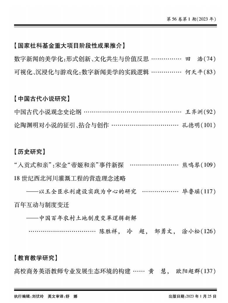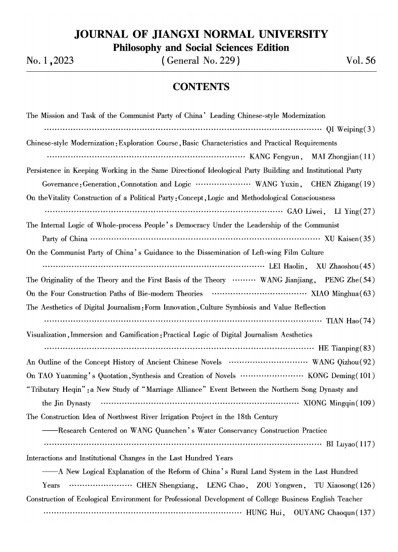 我院孔德明老师题为《论陶渊明对小说的征引、拈合与创作》的学术论文,被刊录发表于三核刊物(中文社会科学引文索引CSSCI来源期刊、全国中文核心期刊、中国人文社会科学期刊AMI综合评价核心期刊)《江西师范大学学报》(哲学社会科学版)2023年第1期。我院全体同仁对孔德明老师表示热烈祝贺。