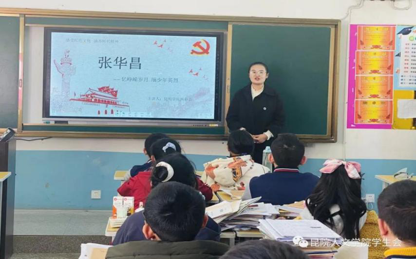 12月26日下午,人文学院党委书记何杰老师、历史学教研室杜鹃老师等一行六人前往昆明学院附属经开学校,开展“云南红色文化师生宣讲”活动。