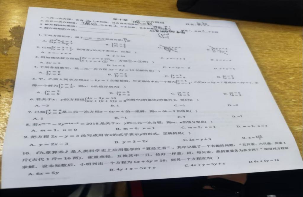 在这次课堂上老师通过课前知识回顾,讲解什么是二元一次方程,二元一次方程组的特征还有解方程的思想和方法,带领我们大家一起在数学的海洋里探索。