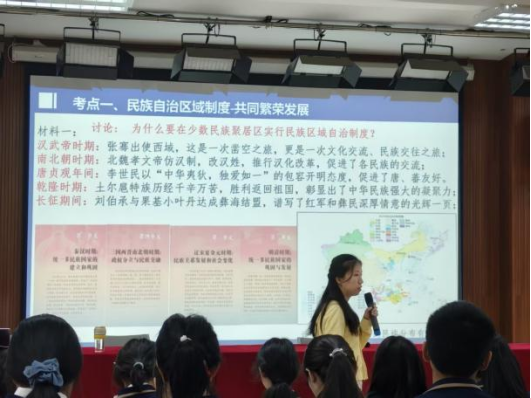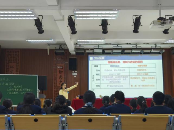 这不仅仅是一堂知识传授课,更是一场思想的启迪。通过小组讨论、材料分析、生活实例、考点链接和拓展思考等多种形式,同学们不仅掌握了“民族区域自治制度”和“一国两制”的核心知识,更深刻体会到维护国家统一、促进民族团结是中华民族的最高利益,是每个中华儿女的共同责任。老师巧妙的教学设计和同学们积极的参与,共同呈现了一堂有深度、有温度、有思考的历史公开课!