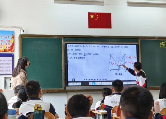 张应应老师的数学课堂令我眼前一亮,彻底颠覆了我对传统数学课的认知。课程开始的时候看似常规:核对答案、讲解错题,但在遇到一道角线证明难题时,教学节奏发生巧妙转变。张老师没有急于给出答案,而是鼓励学生主动思考、上台展示解题思路。本以为学生会怯场,没想到同学们争相举手,踊跃上台板书。即便思路有误,台下同学也报以鼓励的掌声,课堂始终洋溢着包容与探索的氛围。更令人赞叹的是,当我们都陷入思维僵局时,学生们依然热情高涨,不断尝试新的解题路径。此外,课堂设计中的"课前笔记诵读"环节也极具匠心,5-10分钟的知识回顾,既帮助学生快速进入学习状态,又强化了知识记忆,这种细节设计值得我们借鉴学习。