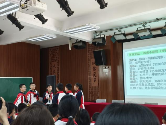 历史公开课上,授课教师以独特的教学设计令人耳目一新。课程以《中国通史》精彩片段导入,通过动态影像完整呈现郑和下西洋的壮阔历程,为学生构建起清晰的知识框架。随后,教师巧妙利用各地与"三宝"相关的地名,自然过渡到郑和生平介绍。在知识梳理环节,教师组织学生两两协作,限时完成历史表格填写,既培养了团队协作能力,又强化了时间管理意识。最令人拍案叫绝的是"历史小剧场"环节——六名学生化身郑和使团与非洲部落代表,通过角色扮演重现历史场景。这种打破传统讲授模式的创新设计,让学生在沉浸式体验中感受历史魅力,有效激发了学科兴趣,同时锻炼了跨学科综合素养。看着学生们自信大方的表演,我们深刻体会到优秀教学方法对释放学生潜能的重要意义。