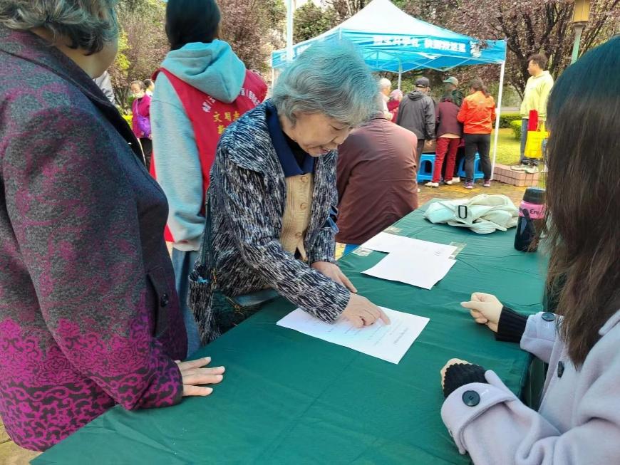 活动伊始,大学生志愿者协助社区工作人员开始签到,分发蛋糕。蛋糕分发结束,志愿者们开展“财运滚滚来”“诗词朗诵会”等特色活动,为参加本次重阳节活动的老年人们送上热情的服务、精彩的表演、暖心的问候,让这个重阳倍加温暖。