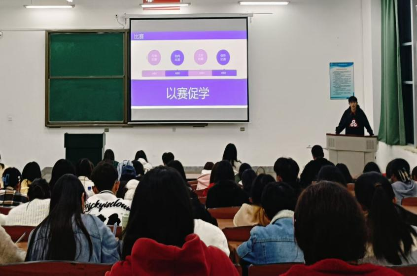 宋承易同学围绕“价值塑造、能力培养、知识传授”三位一体的教育理念,从德育、智育、体育、美育及劳育五个维度出发,向同学们分享了自己的学习心得、获奖经历以及担任学生干部的宝贵经验。宋承易同学指出以赛促学对大学生成长成才具有举足轻重的作用,通过参加各种比赛,同学们能够获得更广博的知识养分,进而促进自身综合素质与能力的提升。