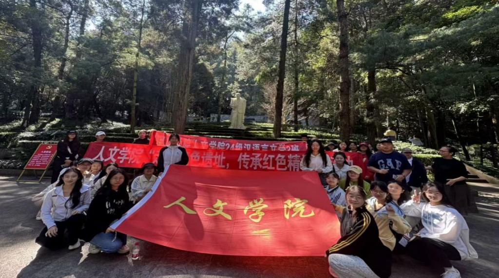 为深入学习党的二十大精神,贯彻落实中共中央、国务院《新时代爱国主义教育实施纲要》,充分利用红色教育资源,缅怀先烈,进一步加强思想政治教育,弘扬爱国主义精神,人文学院于2024年11月组织学生开展了“走访红色遗迹,传承红色精神”主题活动。