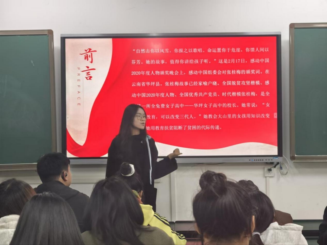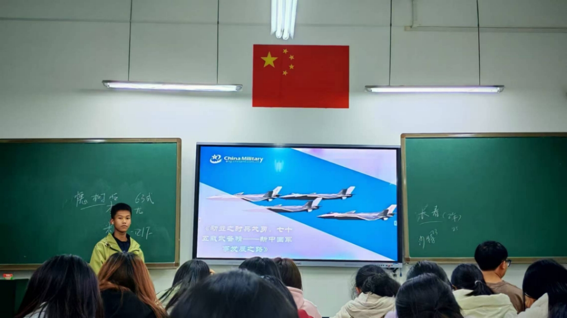 11月17日晚,人文学院宣讲团的成员李双龙同学在博雅楼1206教室,以“新中国成立75周年发展成就”为主题进行宣讲。此次宣讲会不仅加深了同学们对我国军事发展历程的深刻认识,也让同学们体会到我国军事技术变革的波澜壮阔的历程,还让同学们懂得了祖国和平来之不易。同日19点,青年讲师团成员邹兴雷同学于博雅楼教室开展了主题为“七十五年辉煌路,踔厉奋发谱新章”的主题宣讲活动,邹兴雷讲师带领全体同学起立,共同宣誓:“在新时代的伟大征程上,我们将不忘初心,牢记使命,坚定不移跟党走,以青春之我,奋斗之我,为实现中华民族伟大复兴的中国梦贡献自己的力量!”誓言铿锵有力,激荡着每一位青年的心田。 11月19日,曾靖同学在博雅楼1203教室开展了一场以“致敬张桂梅老师,携手共筑青年公益新篇章”为主题的宣讲活动,曾靖认为,青年肩负着传播公益理念、弘扬公益精神的重要使命,要将公益情怀和担当精神内化于心、外化于行,以更加饱满的热情、更加坚定的信念投身到公益事业中去,并号召青年们携手并进,共同为公益事业贡献自己的力量,书写青年公益事业的新篇章。