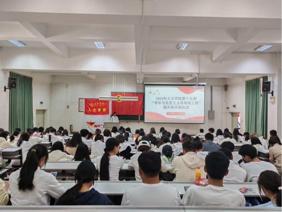 根据《共青团中央 教育部 民政部 农业农村部 国务院国资委印发<关于深入实施青年马克思主义者培养工程的意见>的通知》(中青联发〔2020〕5号)、《共青团中央办公厅关于印发<青年马克思主义者培养工程管理办法(试行)>的通知》(中青办发〔2023〕2号)等文件精神,培育具有忠诚政治品格、浓厚家国情怀、扎实理论功底、突出能力素质的青年马克思主义者。经人文学院团委决定,11月14日,人文学院团委、学生会于博识楼1001举行第十五期“青年马克思主义者培养工程”提升班开班仪式。