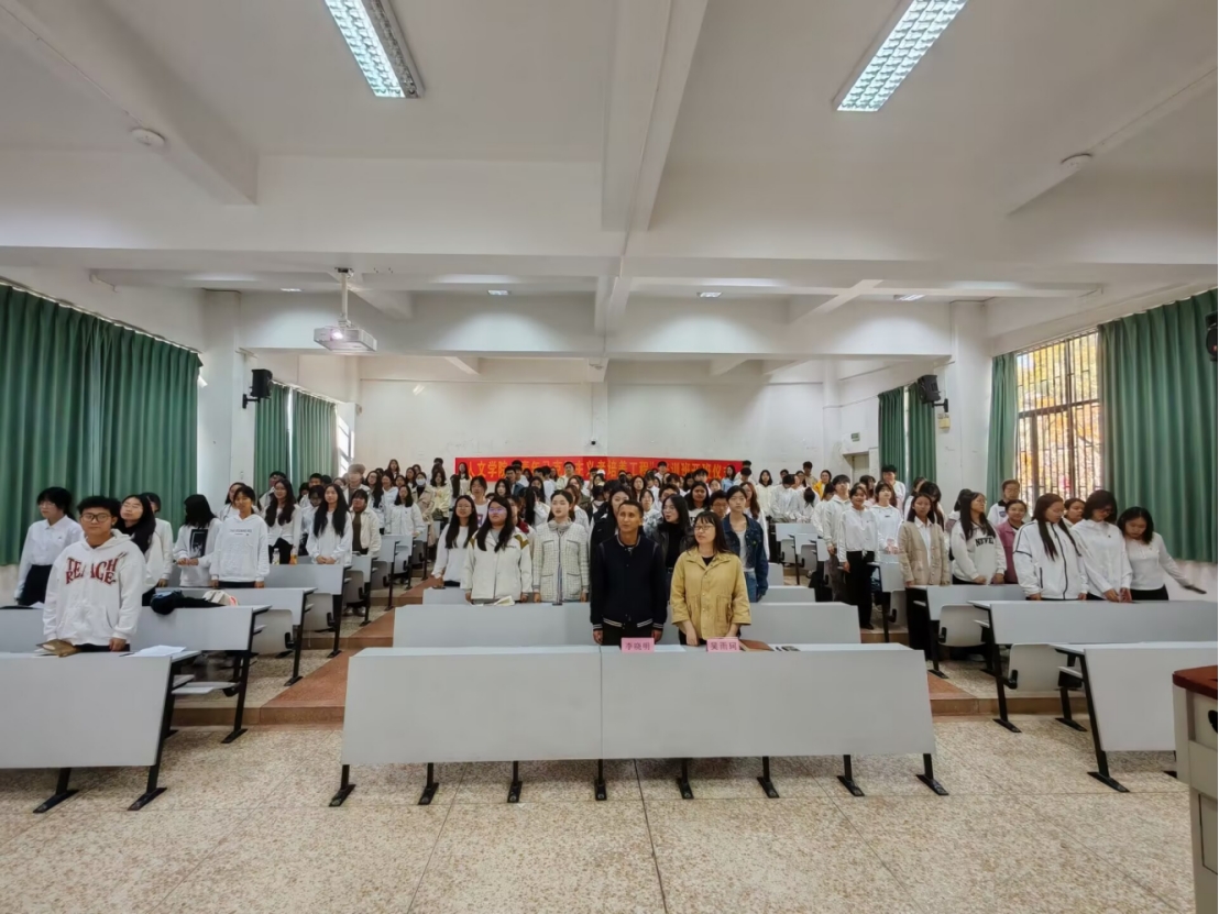 此次仪式出席人员有:人文学院党委副书记李晓明,人文学院团委书记吴雨珂及全体青马工程提升班学员。
