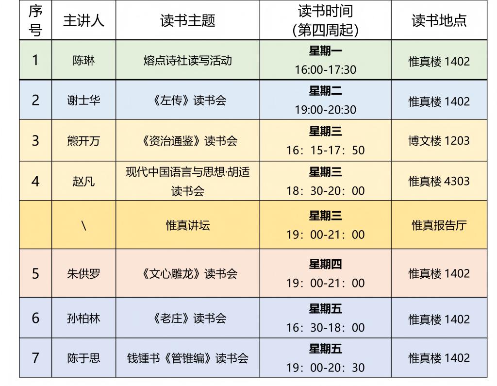 人文学院2025秋季学期“惟真•人文读书会”安排如下:
