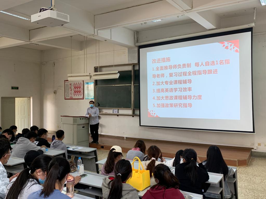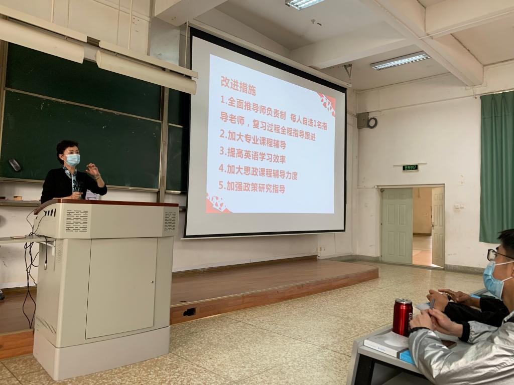 田玉玲副院长为同学分析了近几年的考研形势。考研人数连年增长,今年的国家线也大幅提升。通过对2018级的考研成绩分析,田老师给同学们提供了直观的参考。同学们要合理分析趋势,合理评估自身实际情况,谨慎选择,切忌好高骛远,而追悔莫及。