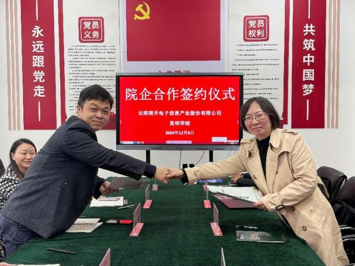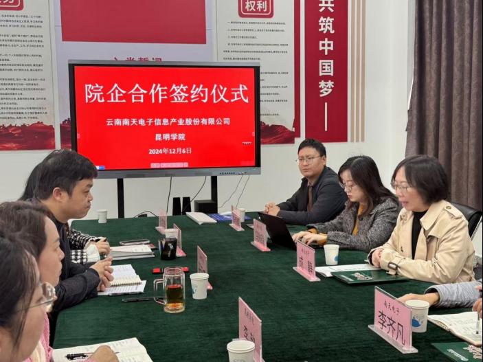 2024年12月6日上午,昆明学院人文学院与南天电子信息产业股份有限公司在人文学院会议室正式签署院企合作协议。人文学院院长阳正伟与南天信息智慧城市业务集团副总裁成静代表双方签约,人文学院党委书记王海艳、数字人文专业相关教师,以及南天电子信息股份有限公司相关部门负责人参加签约仪式。