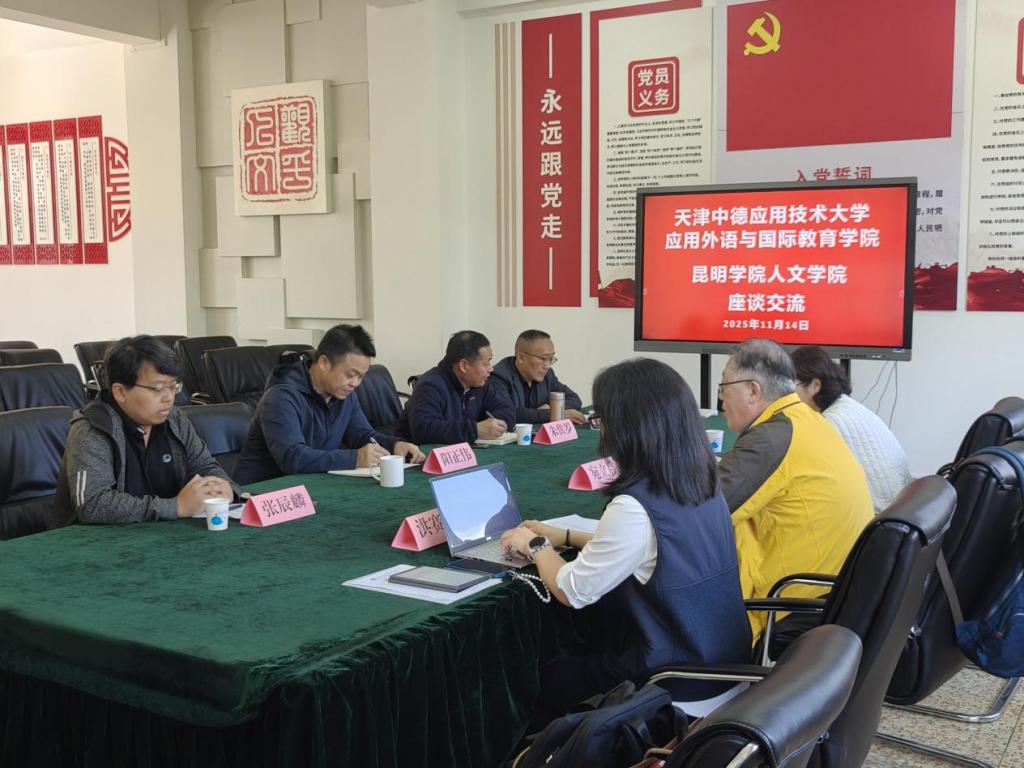2025年11月14日,天津中德应用技术大学应用外国语与国际教育学院院长宛立群、系主任洪赛赛、专任教师向丹一行莅临我校人文学院,围绕数字人文专业建设开展深度交流。人文学院院长阳正伟、副院长朱供罗、数字人文系主任郭鹏群、数字人文专业骨干教师张辰麟参加会议,双方就数字人文专业建设问题进行了充分交流。