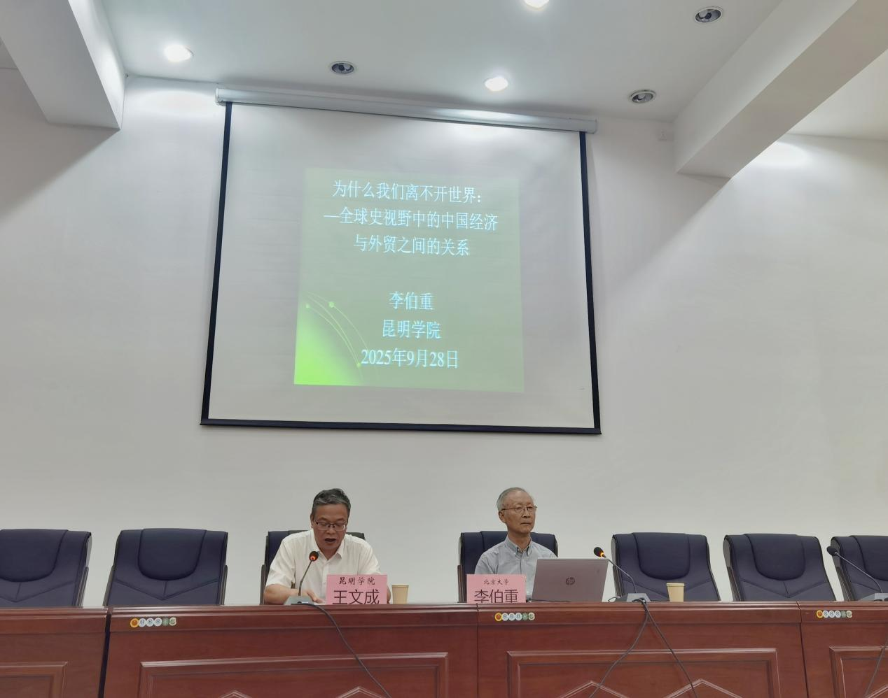 2025年9月28日,北京大学人文讲席教授李伯重先生再次莅临人文学院,主讲惟真人文·名家讲座第91期,主题为“为什么我们离不开世界——全球史视野中的中国经济与外贸之间的关系”。本次讲座由学校党委副书记王文成研究员主持,人文学院、云南大学200余名师生到场聆听。