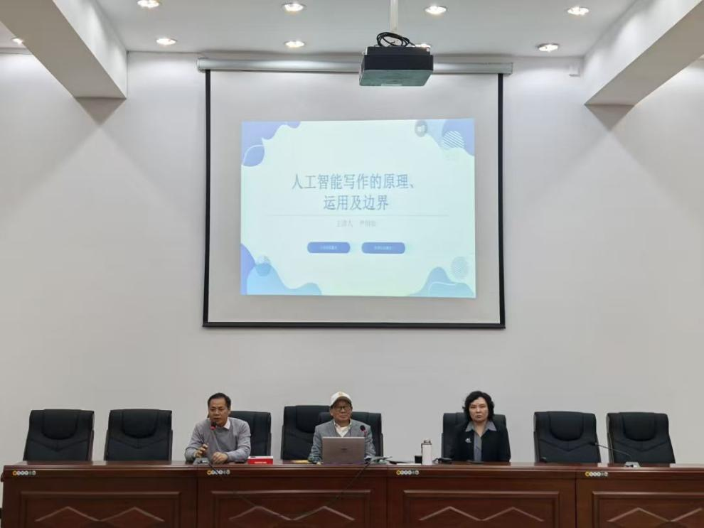 2025年9月26日晚,人文学院“惟真数字人文”第6期讲座在惟真报告厅举行。本次讲座的主题为“人工智能写作的原理、运用及边界”,由昆明学院人文学院主办,主讲人为昆明学院人文学院二级教授尹相如老师。