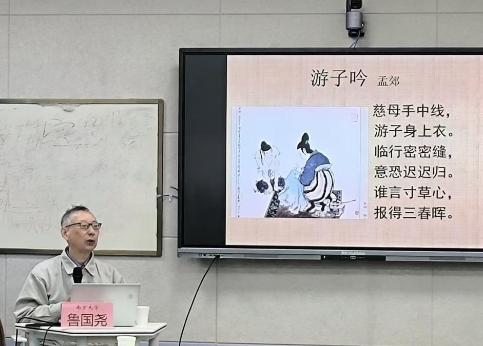本次讲座围绕“古诗吟诵”展开,鲁国尧先生以先人对“吟”的态度及其自身学习吟咏的经历为引,指出吟诵的几个关键词语:“身心沉浸、物我融一;曼声;摇曳”,并依次为师生吟咏《游子吟》《出塞》《琵琶行》等经典诗词,让师生深入感受诗词之美、吟诵之美。此外,鲁国尧先生强调“品味诗词就像吃饭,羊有羊的味道,诗也有诗的味道”,鼓励同学们利用吟诵品味诗的不同味道,体会诗歌中蕴含的不同情感。随后,张民权教授鼓励同学们多学习一些古音韵学的知识,以更好地品味诗词的韵律之美。
