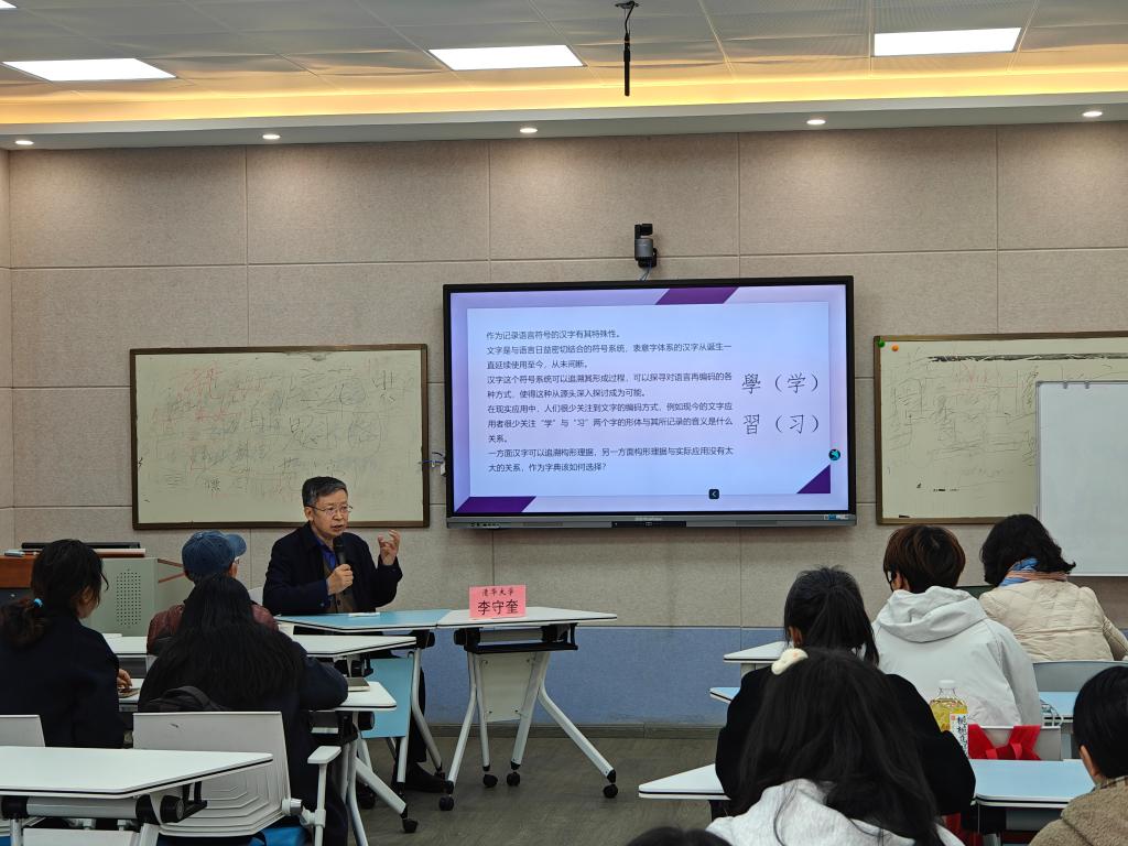 2026年3月15日上午,人文学院“名家讲座”第103期在惟真楼1402教室举行。本次讲座特邀中国文字学会会长、清华大学文学院李守奎教授担任主讲嘉宾,讲座主题为“重新理解中国第一部‘字典’《说文解字》”,讲座由人文学院李烨教授主持。