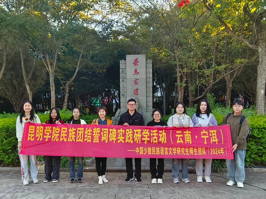 2024年11月16日,昆明学院中国少数民族语言文学专业的硕士研究生师生团队前往普洱,开展铸牢中华民族共同体意识实践研学活动。此次活动不仅是学术探索的延伸,更是对民族团结和文化传承的一次深刻体验。
