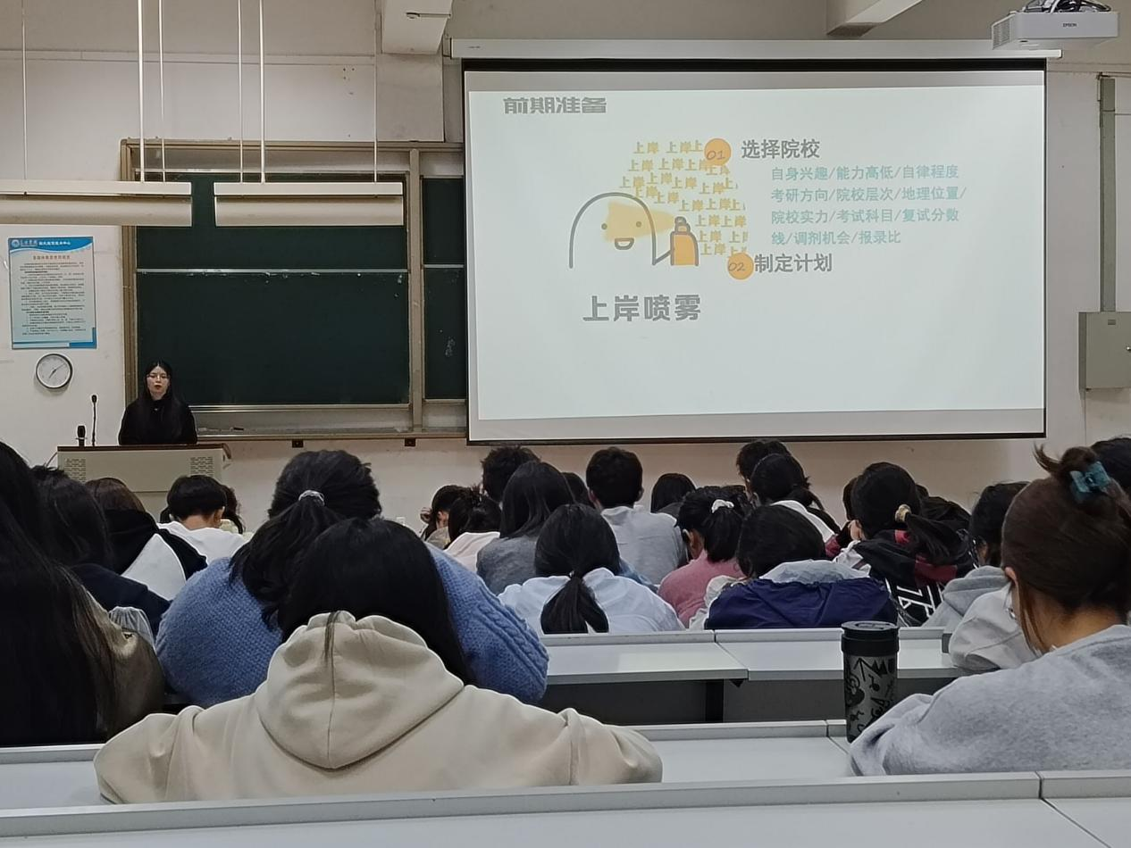 在考研原因方面,仕仅云强调同学们一定要明确自己考研的原因,她点明:考研是一个艰苦的过程,只有明确了自己考研的原因才能在考研的路上坚持下去,而不是所谓“随大流”。提及考研现状时,仕仅云从文学考研方面向同学们分析如今的形势,并提醒同学们在考研之前要了解清楚所感兴趣的专业考研现状,从而进一步做好考研准备。在考研准备方面,仕仅云从地域、专业和院校选择三方面向同学们提供了考研准备的思路。在考研课程分享方面,仕仅云根据自身考研经验,向同学们推荐了自己认为有用的网络课程,为同学们提供了课程选择的新路径。