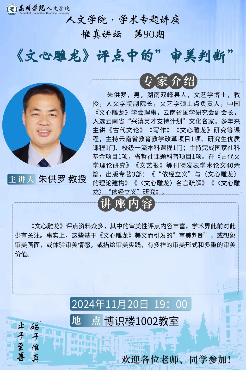 朱供罗教授主讲惟真·人文学术讲坛第90期,欢迎参加!!