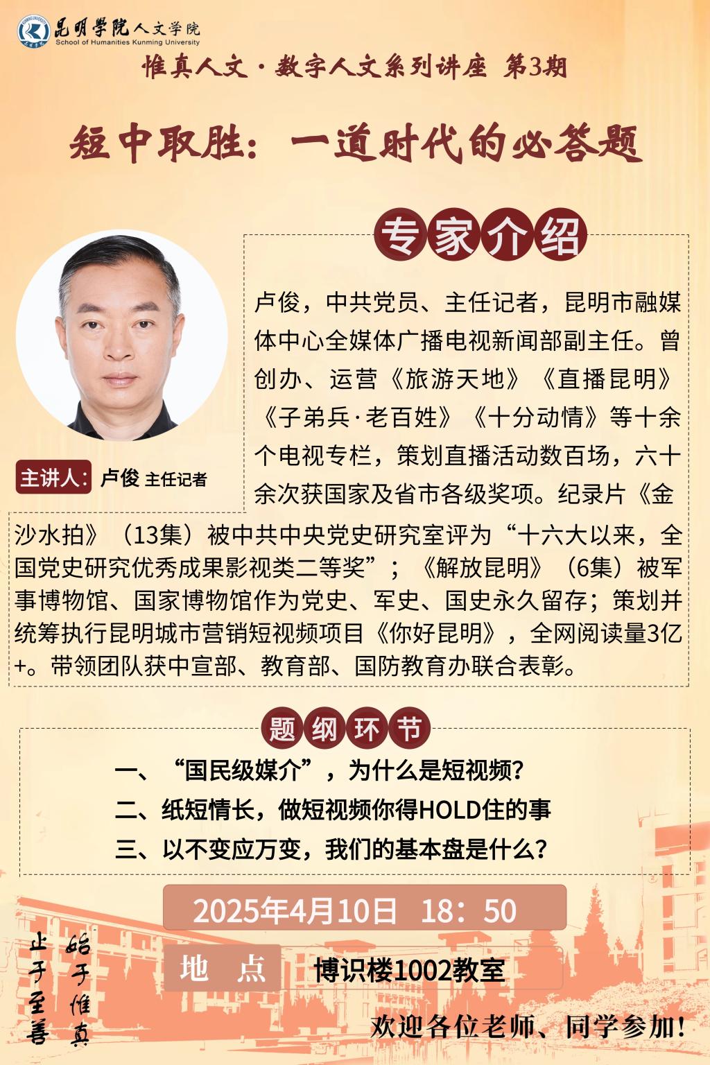 主任记者卢俊 主讲惟真·数字人文系列讲座 第3期